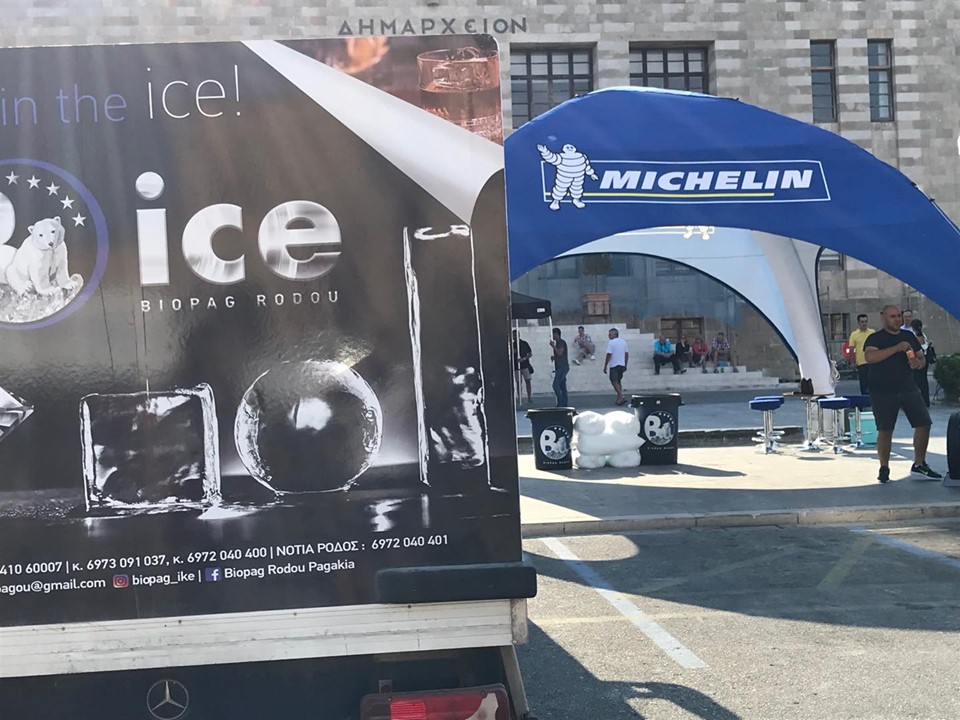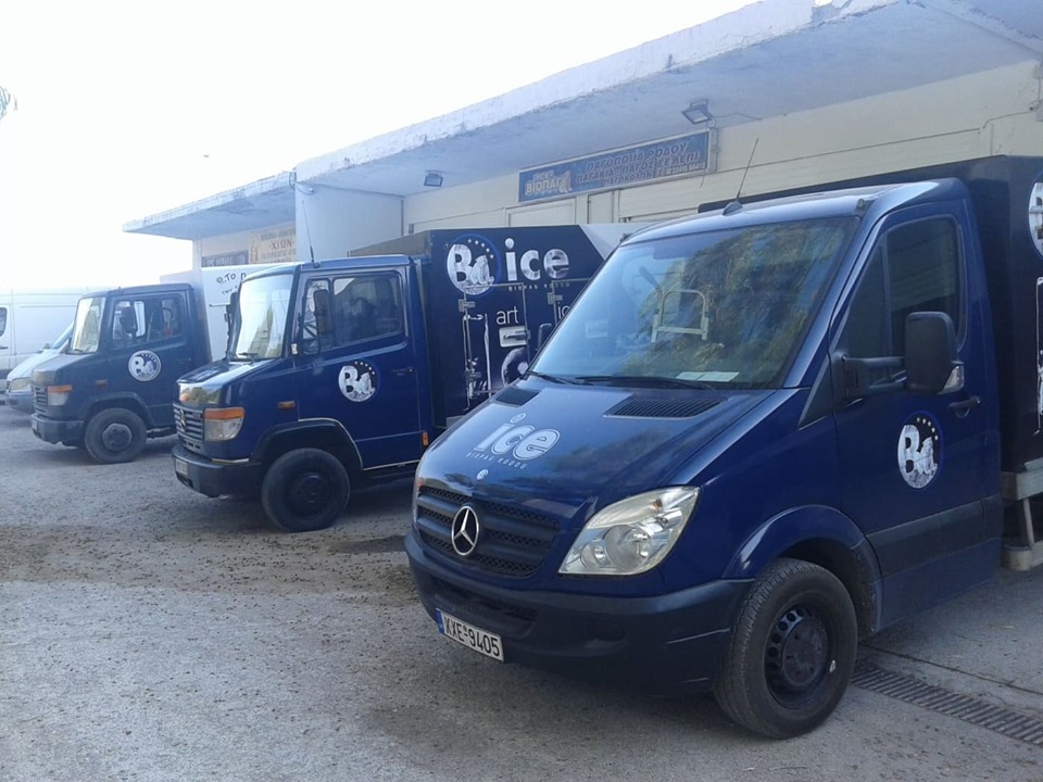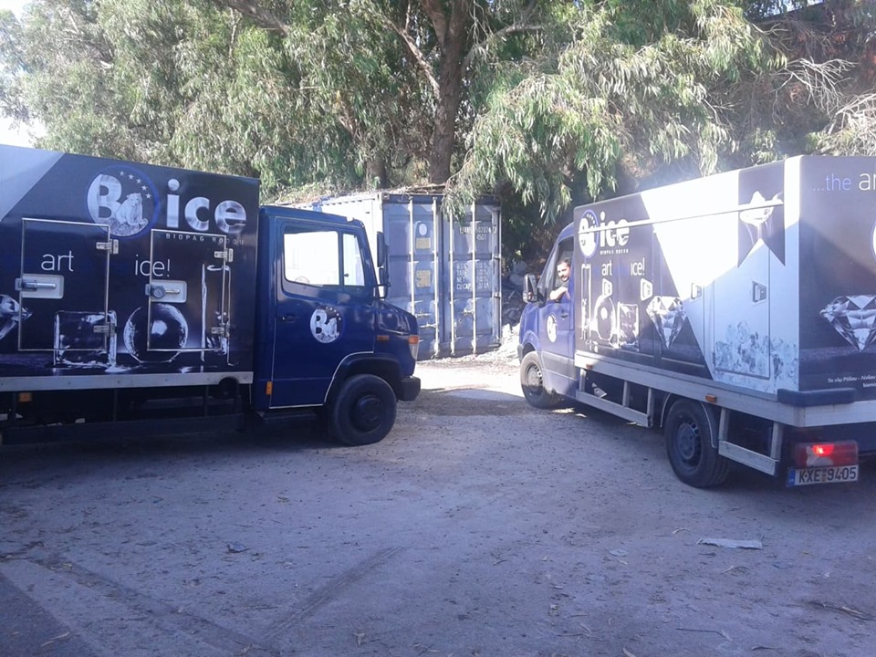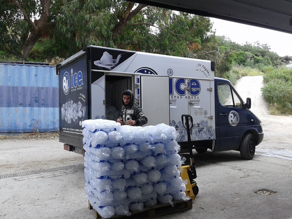 Σύγχρονα φορτηγά-ψυγεία για διανομή πάγου σε όλη τη Ρόδο.